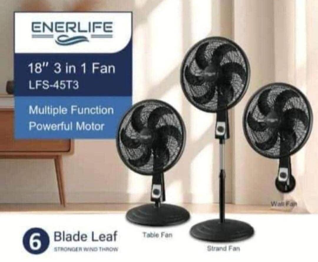 Ventilador 3 en 1 ENERLIFE: Pared, Pedestal y Mesa